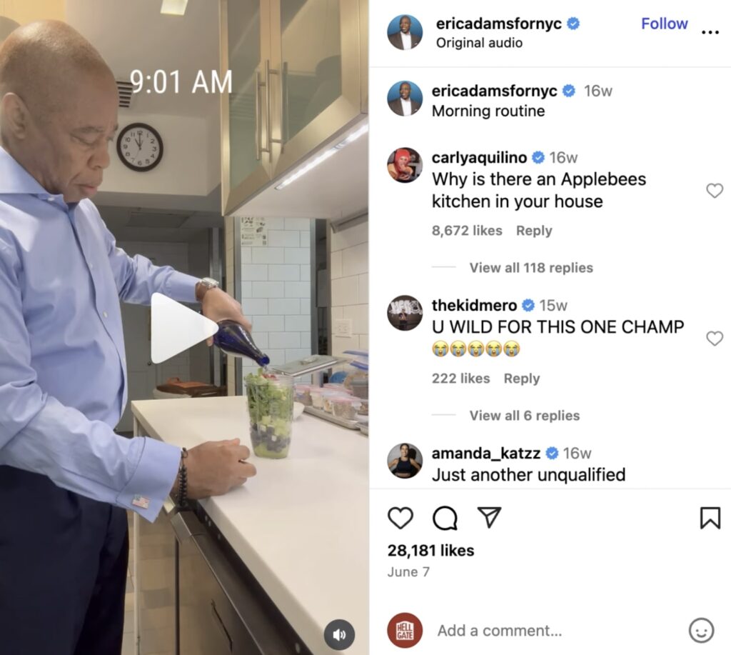 And was Polatseck the videographer who, according to New York Magazine, stuck around until after midnight on a Sunday morning to film Eric Adams’s strange nine-minute video announcing he was no longer running for reelection? But to whoever shot and edited it on the campaign (or at City Hall), we do appreciate the stirring strings of Sinatra’s “My Way” that kicks it all off.